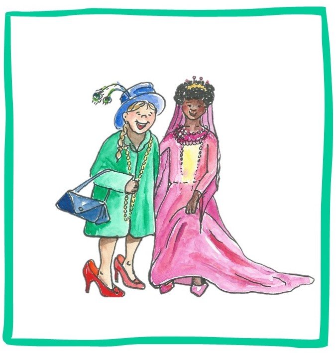 - Een korte modeshow laten houden waarbij ze hun eigen of elkaars kleding omschrijven: ´She is wearing… / I´m wearing … / We are wearing…´. Bekijk een voorbeeld in het filmpje hieronder.