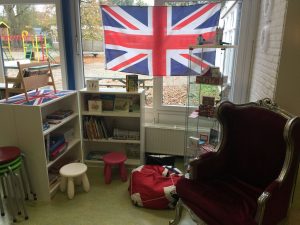 Je kunt Engels ook zichtbaar maken door in elk lokaal een English Corner te creëren. In deze ´hoek´ leg je Engelse (prenten-)boeken en spelletjes neer, hang je Engelse flashcards op en plaats je typische Engelse spulletjes (bijvoorbeeld meegebracht door de kinderen). Ook benadruk je het thema waar je op dat moment mee bezig bent. Verder kun je er een Britse vlag, ketting of hoed neerleggen, die je elke keer tevoorschijn haalt als de Engelse les begint: zo weten de leerlingen dat je vanaf nu alleen maar Engels praat.