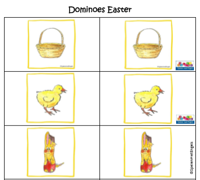 Met dit uitgebreide dominospel oefenen leerlingen spelenderwijs de Engelse woordjes bij het thema ´Easter´. Het is goed te gebruiken in de oefenfase: Leerlingen noemen het woord als ze hun kaartje op tafel aansluiten. Het spel bevat 40 verschillende kaarten met 13 verschillende woorden. Elke kaart heeft 2 plaatjes. Het is geschikt voor alle groepen.