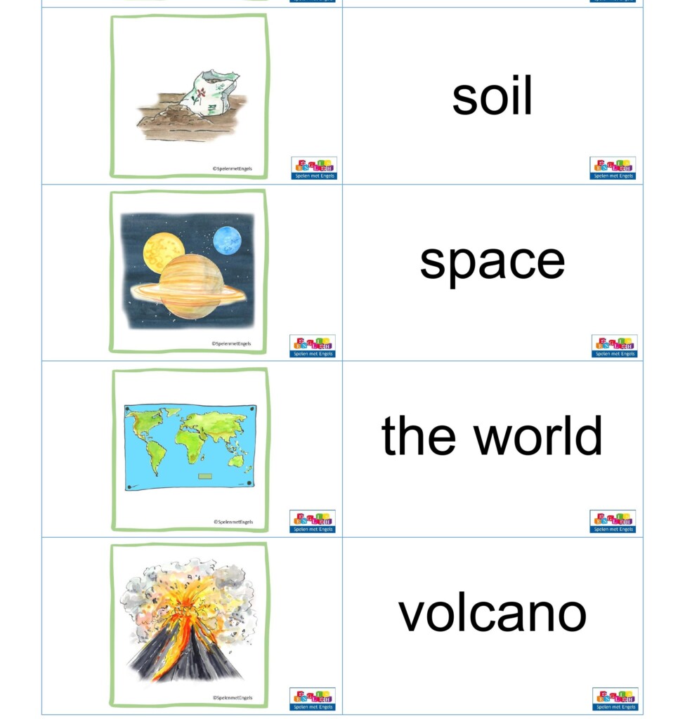 50 kaartjes met links het plaatje en rechts het woord