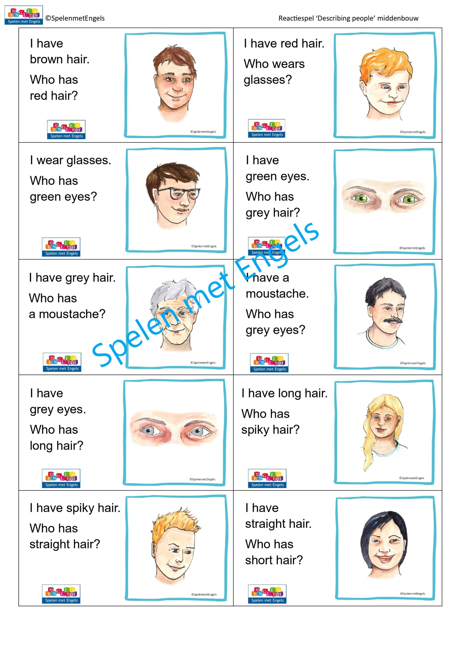Dit themapakket bevat al het materiaal dat je ook los in de webshop vindt. Het is geschikt voor leerlingen in de middenbouw van het basisonderwijs (en voor bovenbouw-leerlingen met weinig ervaring met Engels). Zoek je een themapakket met minder woorden? Bekijk dan Themapakket Describing people (onderbouw). Zoek je juist een pakket met moeilijkere woorden? Bekijk dan die voor de bovenbouw. Klik op ‘meer informatie’ als je precies wilt weten wat het lesmateriaal inhoudt en hoe je het kunt gebruiken.