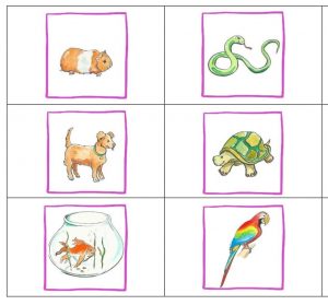 Als je het zelf maakt, kun je kiezen voor opdrachten in de vorm van zinnetjes (geschikt voor de midden- en bovenbouw, want leerlingen moeten tenslotte Engels kunnen lezen), maar je kunt ook werken met plaatjes (flashcards). Kies dan een thema waar je op dat moment mee bezig bent. Geef elke leerling een kaartje met twee plaatjes. Links op het kaartje staat het woord dat een ander klasgenootje zegt, rechts staat het woord dat de leerling zelf zegt. Dus bijvoorbeeld: ´When you hear the word ´hamster´, you say ´snake´´ of ´When you hear ´dog´, you say ´turtle´. Meer reactiespellen per thema vind je in de webshop van Spelen met Engels.